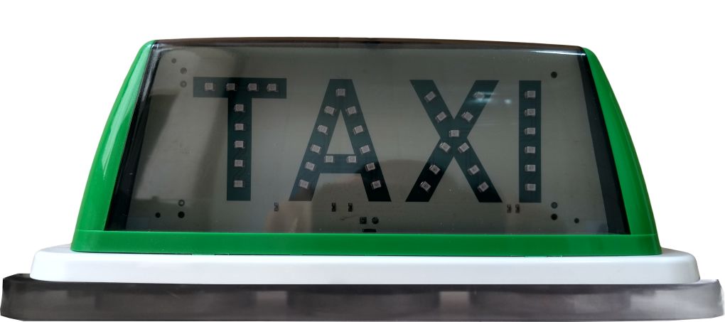 A palavra TAXI confeccionada em LEDs SMD de alto brilho e durabilidade, na cor verde,